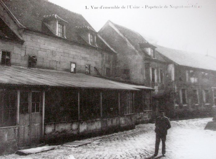 Cour intérieure de la papterie de Nogent au début du 20e siècle (AC Nogent-sur-Oise).Immatriculation