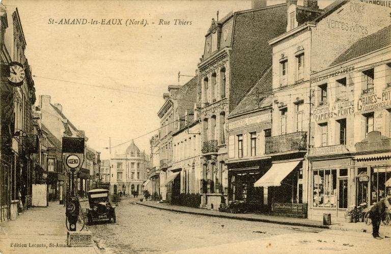 La rue Thiers dans les années 1940 (?), carte postale (Médiathèque Saint-Amand-les-Eaux).Immatriculation